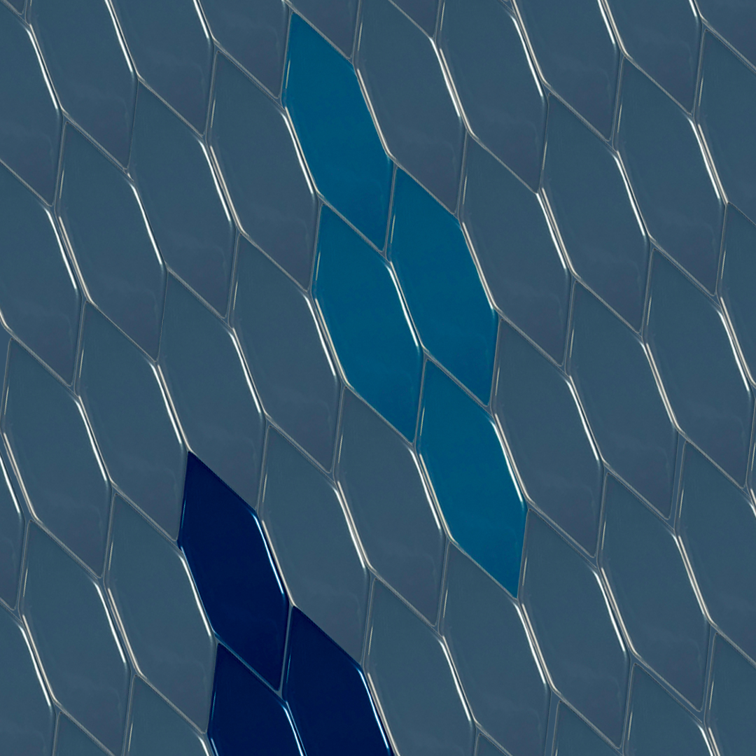 فرم لوزیشکل کشیده با دو سر نوکتیز و لبههای منحنی نرم، حالتی معمارانه و مدرن دارد. لعاب براق آبی با طیف تیره و عمق رنگی بالا، جلوهای از وقار، نظم و آرامش به فضا میبخشد. طراحی این قطعه، در عین سادگی، بسیار تأثیرگذار بوده و در کنار دیگر قطعات میتواند ترکیبهای هندسی بینظیری خلق کند.